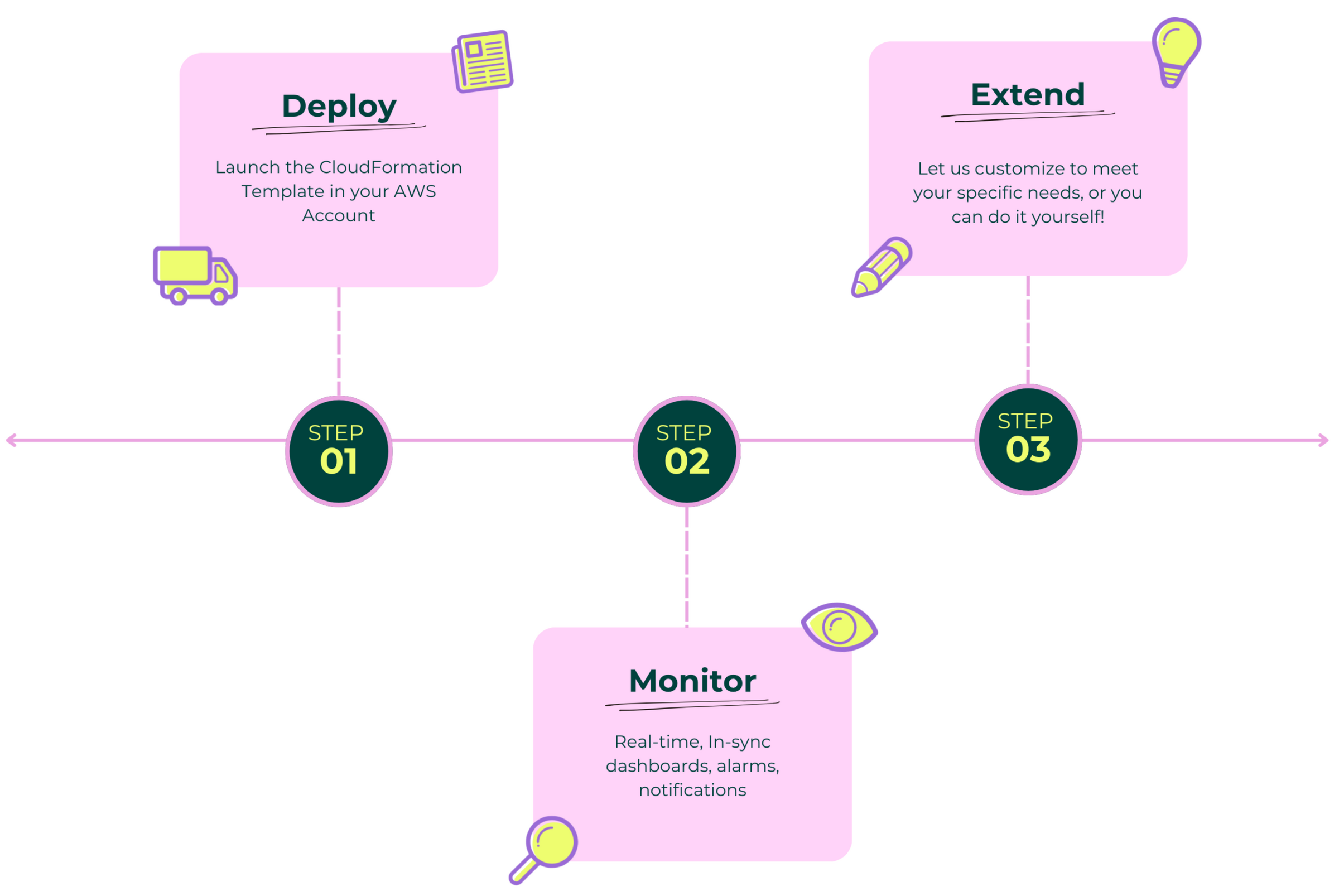 3. Extend: You are in complete control of the dashboards, alarms, thresholds, and notifications. You can extend them however you would like, or let us use our expertise to do it for you.